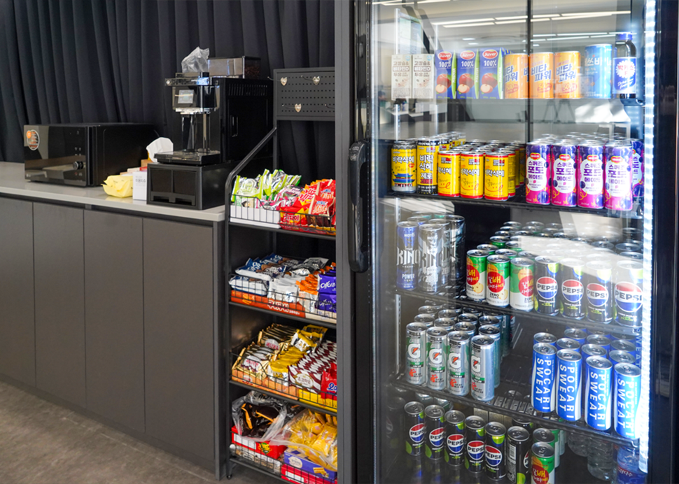 반납을 진행하는 스태프가 편히 쉴 수 있는 리클라이너 좌석과 간단한 음료·간식을 제공함으로써, 단순 대기 공간을 넘어 편하게 머물며 장비 테스트를 이어갈 수 있는 라운지형 공간을 갖추고 있습니다.