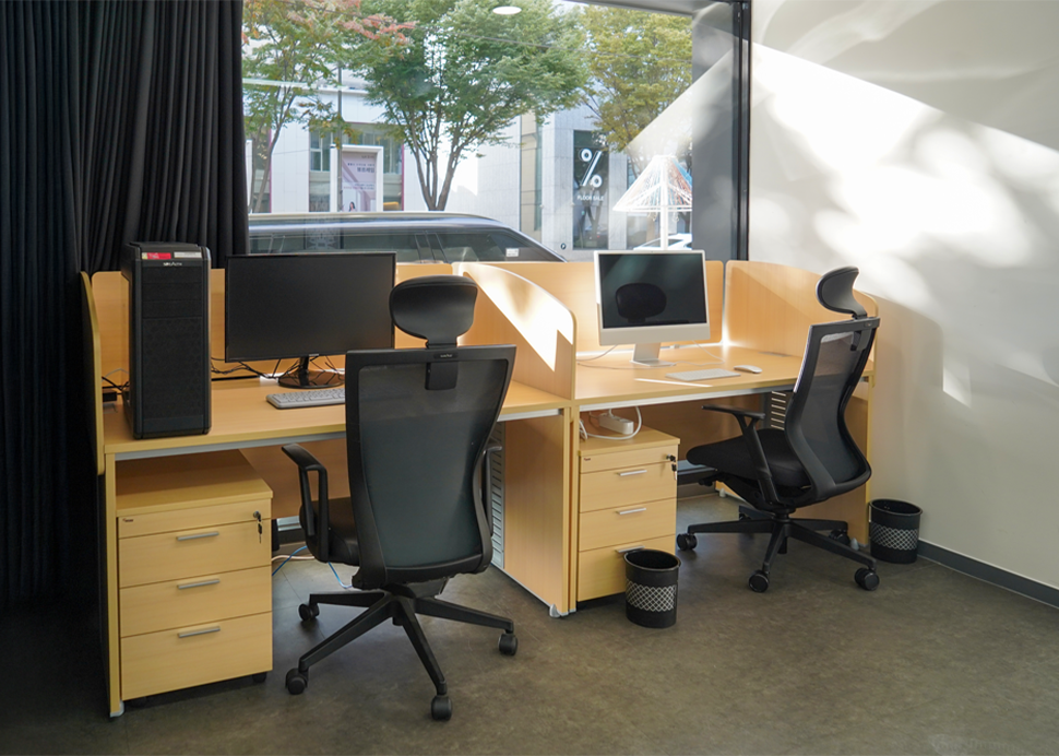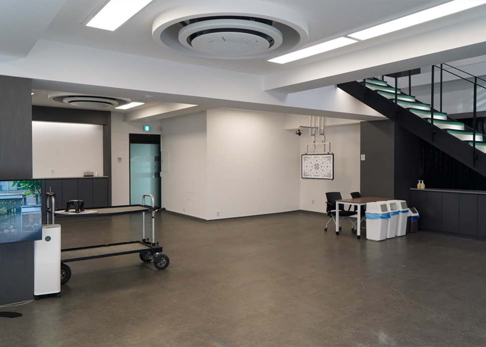 2층에서는 관계자들을 위한 미팅룸 및 장비를 보관할 수 있는 전용 공간이 마련되어 있습니다. 촬영팀의 흐름에 맞춰진 장비 반납·테스트 동선은 B2B 비즈니스에 특화된 구조로, 촬영 전반을 보다 원활하게 진행할 수 있습니다.