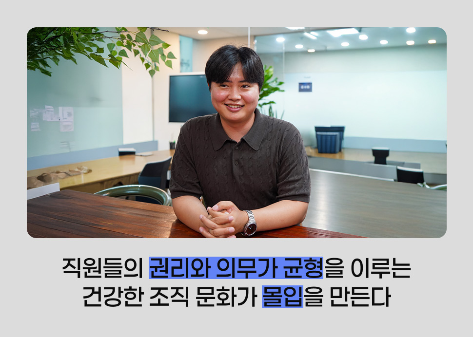 우리가 꿈꾸는 이상적인 근무 환경은 직원들의 권리와 의무가 균형을 이루는 것입니다. 직원이 맡은 일을 책임감 있게 다하고, 그 과정에서 정당한 인정과 보상을 받는 구조가 마련되어야 일에 대한 몰입이 자연스레 따라옵니다. 이를 위해서는 단순히 “열심히 하라”는 말이 아니라, 직원들이 몰입할 수 있도록 돕는 교육과 툴이 필요합니다. 성과와 권리가 존중되는 구조 속에서, 회사가 바라는 문화보다 직원이 바라는 환경이 먼저 고려되어야 진짜 좋은 회사가 된다고 생각합니다.