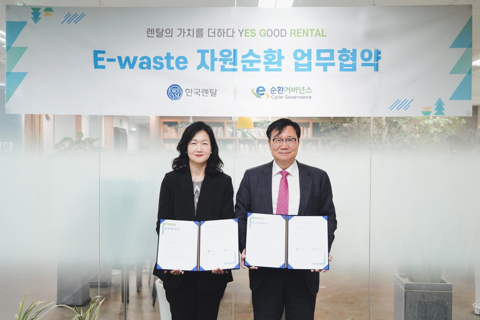 지속가능성은 한 기업의 노력만으로 완성될 수 없습니다. 그래서 한국렌탈은 다양한 파트너와 손을 맞잡고 E-순환거버넌스 협약을 추진하고 있습니다.